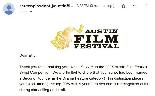 View fullsize All riiiiiight! My second placement at @austinfilmfest for the year (another Second Rounder, not semifinalist... but I'm honored nonetheless). SHIBARI is my first feature script that I wrote as an immigration horror story -- the most common feedback